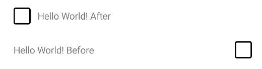 <input:CheckBox Text="Hello World! Before" LabelPosition="Before" />